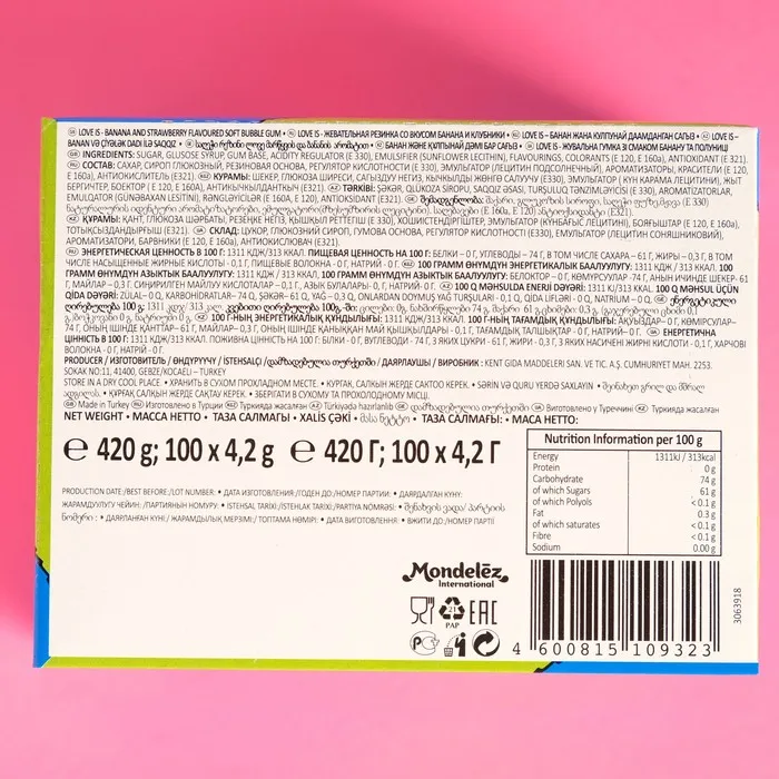 Жевательная резинка «Love is...» со вкусом банана и клубники гарантирует: хорошее настроение надолго останется у вас в гостях!