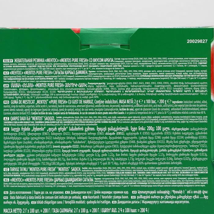 Эффективно освежает дыхание, дарит ощущение уверенности в себе и вдохновляет на свежие идеи. В составе жвачки Mentos Pure Fresh вкус Арбуз нет сахара. Благодаря компактному формату жевательную резинку удобно брать с собой: упаковка легко помещается в кармане, сумке или рюкзаке.