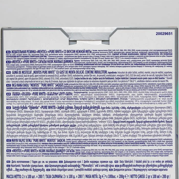 Жевательная резинка Mentos Pure White обеспечивает свежесть дыхания, помогает поддерживать естественную белизну зубов и вдохновляет на свежие идеи. В составе жвачки Mentos Pure White вкус Нежная мята нет сахара. Благодаря компактному формату упаковки жевательную резинку удобно брать с собой на работу, учёбу или хранить дома.