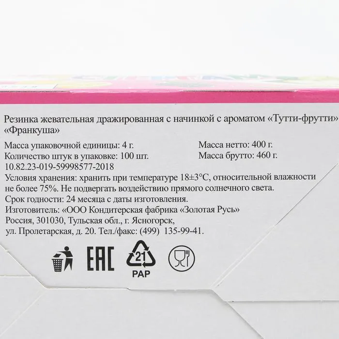 "Мистергам" станет отличным компаньоном во время перерывов на работе, учебе или прогулках с друзьями. Она подходит для тех, кто ищет яркий и освежающий перекус на ходу. Не упустите возможность побаловать себя и поднять настроение с жевательной резинкой "Мистергам" с фруктовой начинкой — это истинное удовольствие, которое всегда под рукой!
