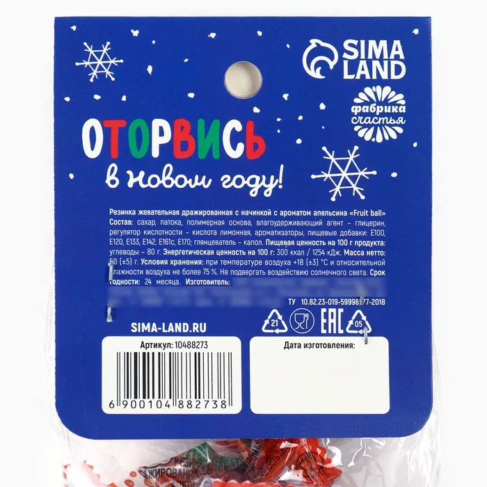 Жевательная резинка «Полный джингл белз» с начинкой и ароматом апельсина, 50 г. — Характеристики
