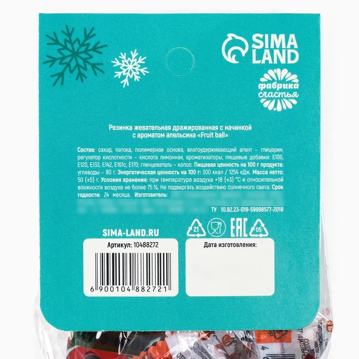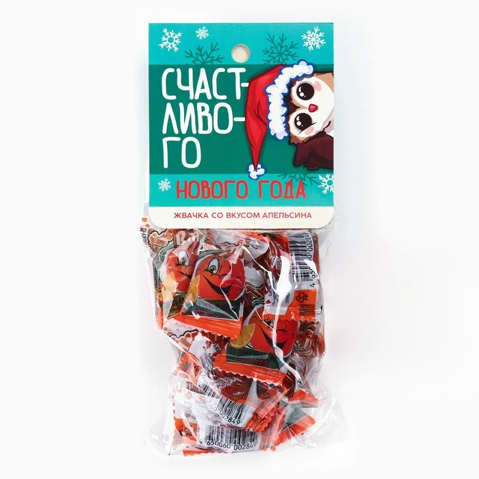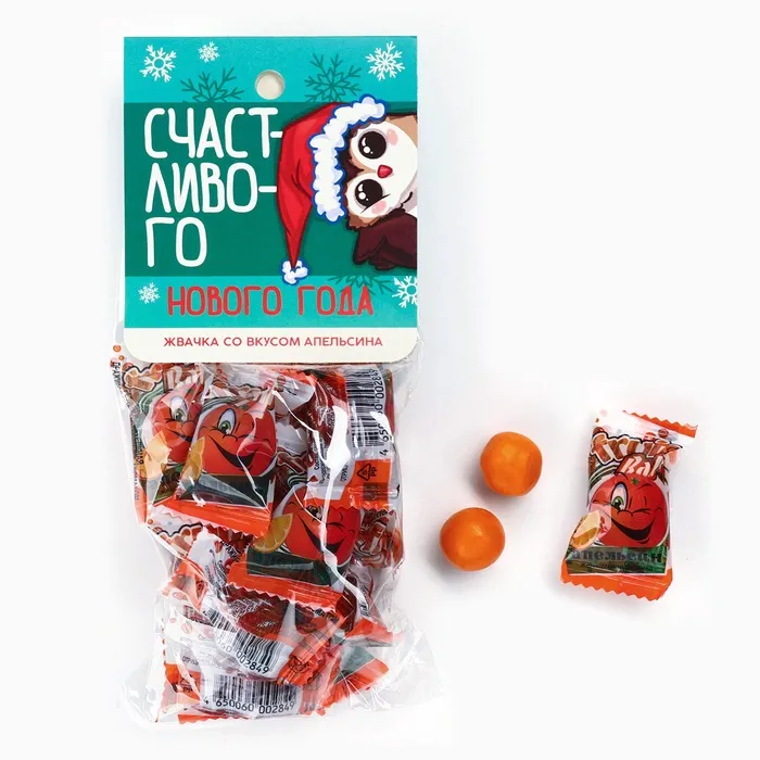 Жевательная резинка «Счастливого нового года» с начинкой и ароматом апельсина, 50 г. — Характеристики