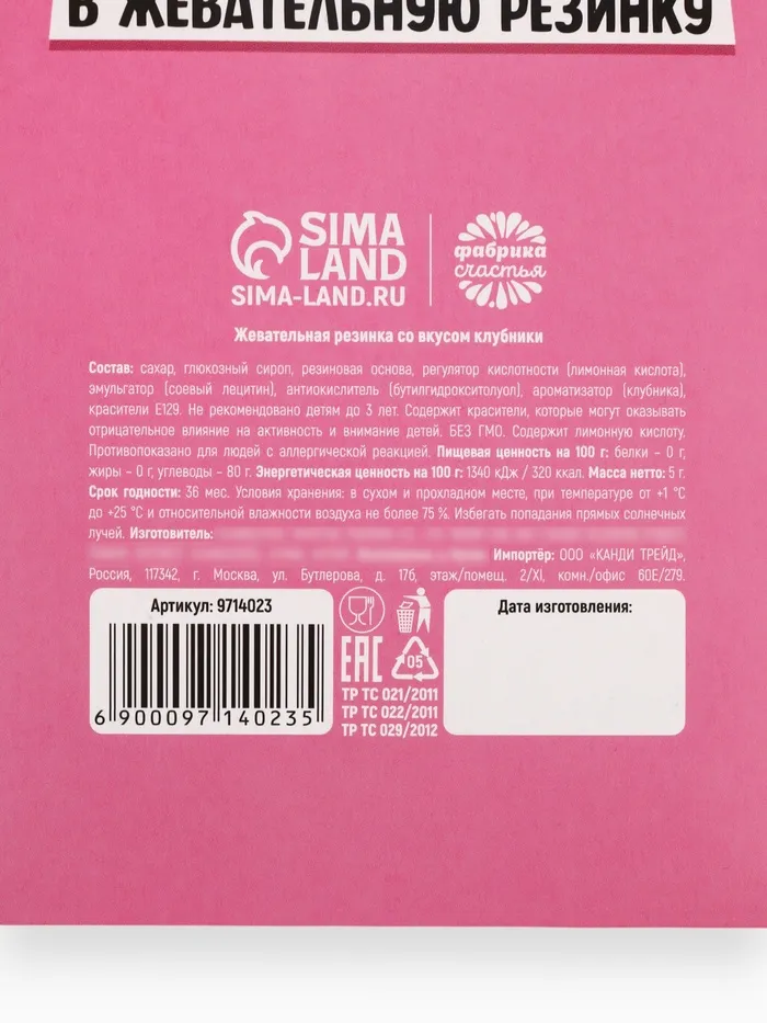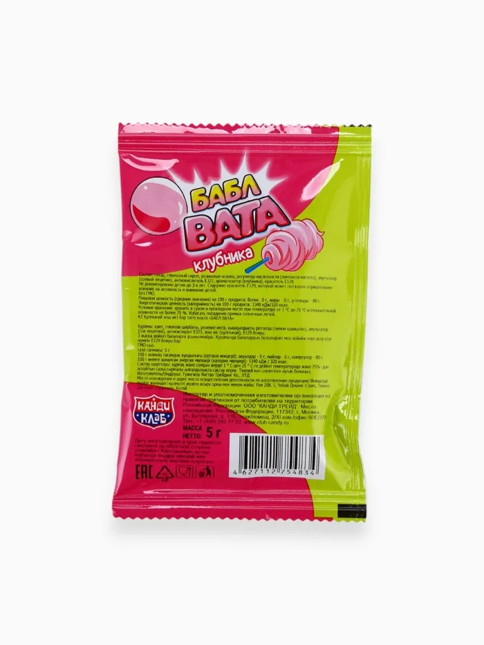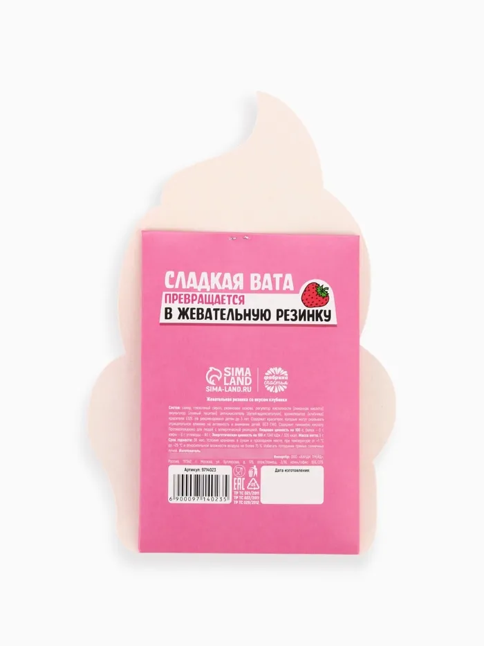 Жевательная резинка-сладкая вата «Сладость тебе в радость», вкус: клубника, 5 г. — Характеристики