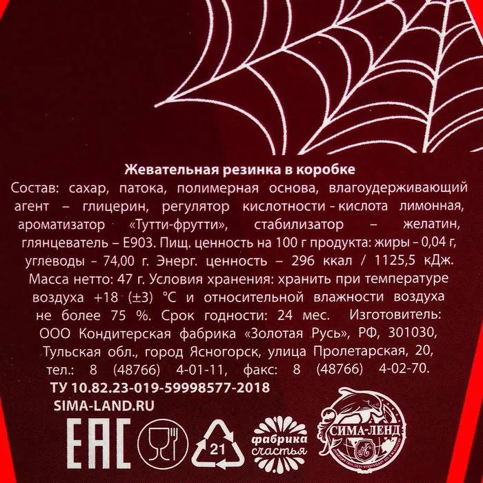 Жевательная резинка «Страшно вкусно»: со вкусом тутти-фрутти, 47 г. — Характеристики