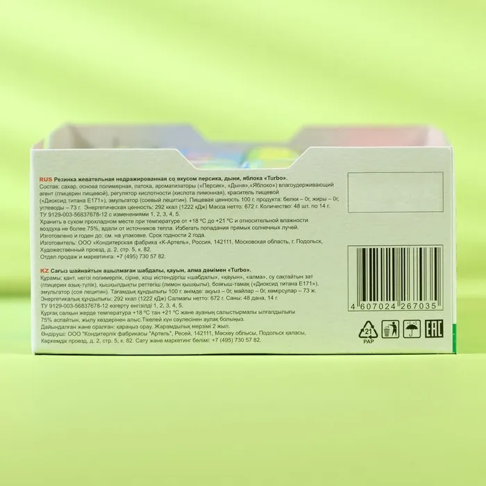 Откройте для себя удивительный мир вкусов с этой жевательной резинкой и наслаждайтесь каждым моментом, жуя Turbo ассорти!