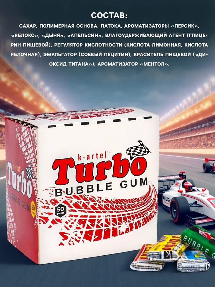 Погружайтесь в мир фруктового наслаждения с жевательной резинкой Turbosport Racing и дайте своим вкусовым рецепторам заряд ярких эмоций!