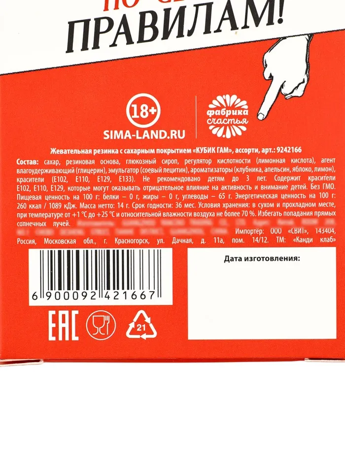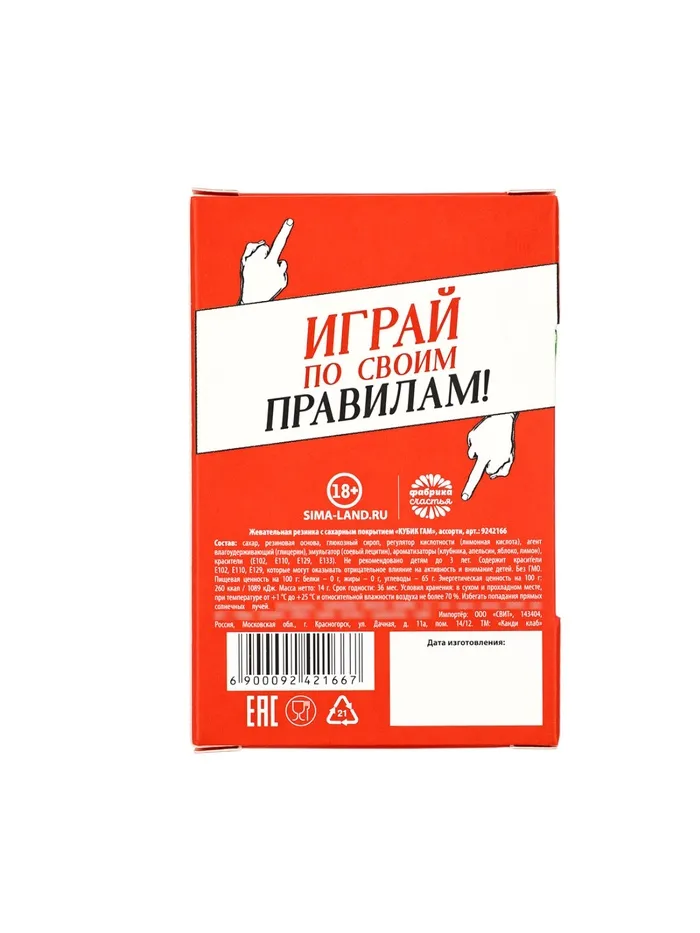 Жевательные резинки «Когда ты Джокер» в форме игрального кубика, 14 г. — Характеристики