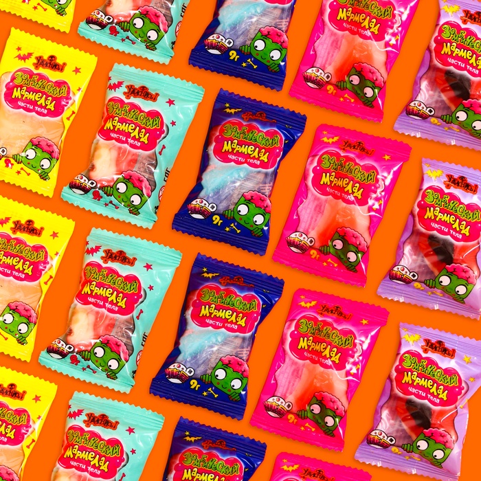 Жевательный мармелад «Зомбический мармелад ЧАСТИ ТЕЛА» НАБОР, 75 шт, 675 г