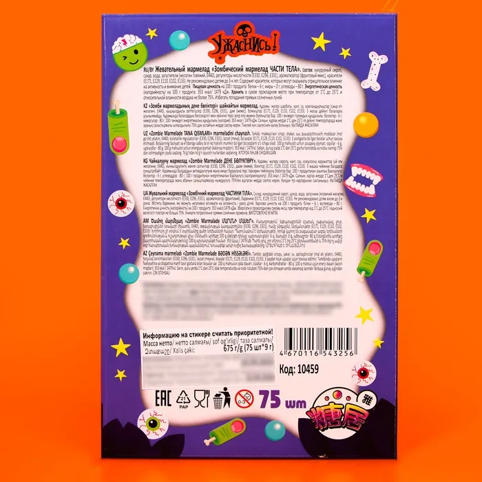 Жевательный мармелад «Зомбический мармелад ЧАСТИ ТЕЛА» НАБОР, 75 шт, 675 г — Характеристики