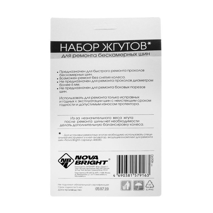 Ремонтный комплект поможет произвести экстренный ремонт шин. В наборе представлены инструменты с витым и с игольчатым наконечником, а также 5 штук жгутов сырой резины длиной 10 см. Набор является бюджетным вариантом оказания ремонтных услуг с базовым комплектом необходимых инструментов. С помощью инструмента c наконечником напильником зачищается место прокола. С помощью инструмента с игольчатым отверстием прокол заделывается жгутом из сырой резины, на который предварительно наносится клей активатор. Пару минут ожидания и можно ехать!