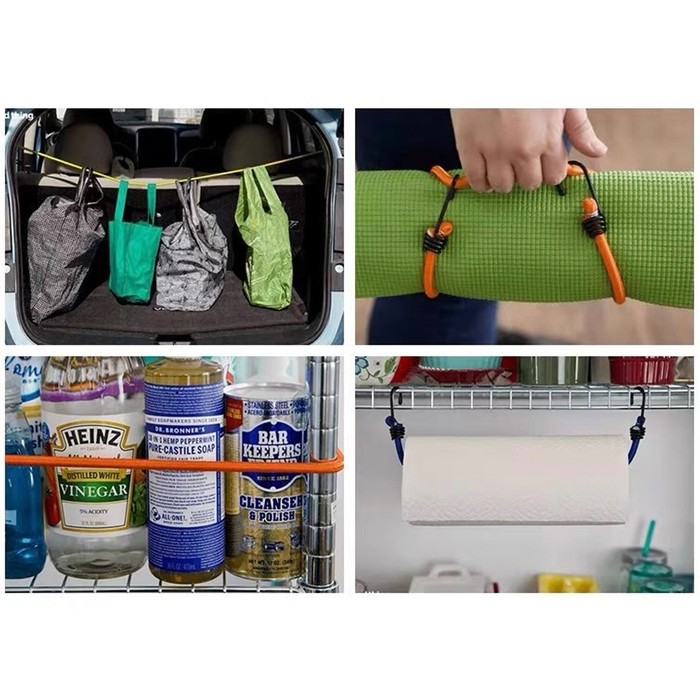 Изготовленный из прочного текстиля и металла, этот жгут обеспечивает отличную прочность и долговечность. Два надежных крючка позволяют легко и быстро фиксировать предметы, что делает его идеальным для использования в быту, на природе или во время путешествий.