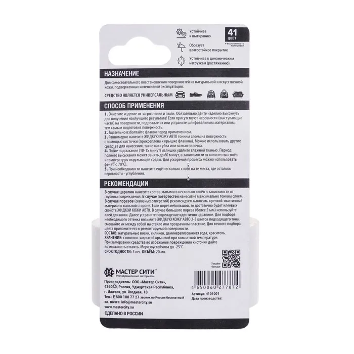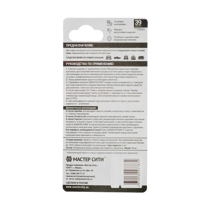 Жидкая кожа «Мастер Сити» Авто черного цвета - эффективное средство, когда мебель, обувь, предметы интерьера имеет повреждения. Отлично справляется с царапинами, трещинами и другими мелкими деффектами. С помощью такого инструмента можно быстро и без больших затрат починить испортившуюся мебель или одежду.