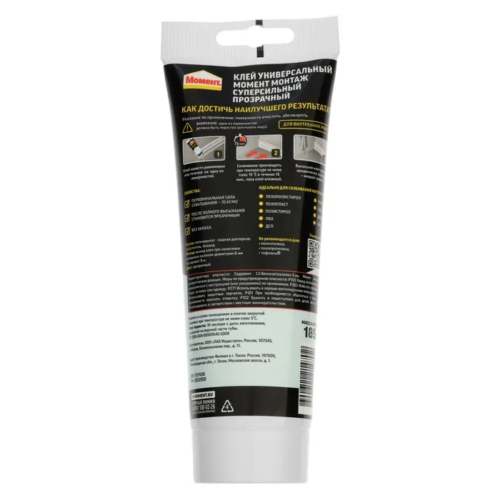 Жидкие гвозди "Момент" Монтаж, суперсильный МВп-70, цвет прозрачный, 185 г — Характеристики