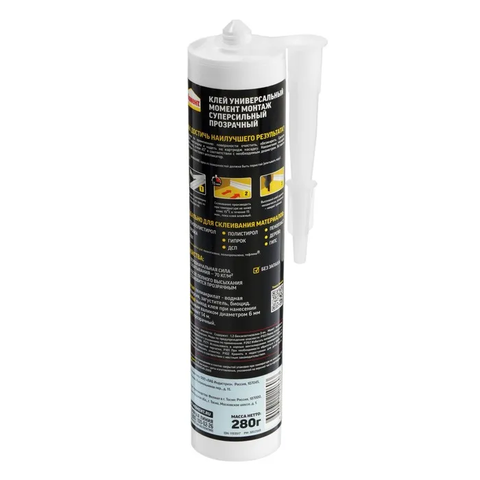Жидкие гвозди "Момент" Монтаж, суперсильный МВп-70, цвет прозрачный, 280 г — Характеристики