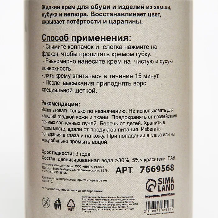 Удобный флакон с аппликатором для нанесения облегчит процедуру ежедневного ухода за обувью - не нужно приобретать и использовать дополнительную щетку для нанесения состава.