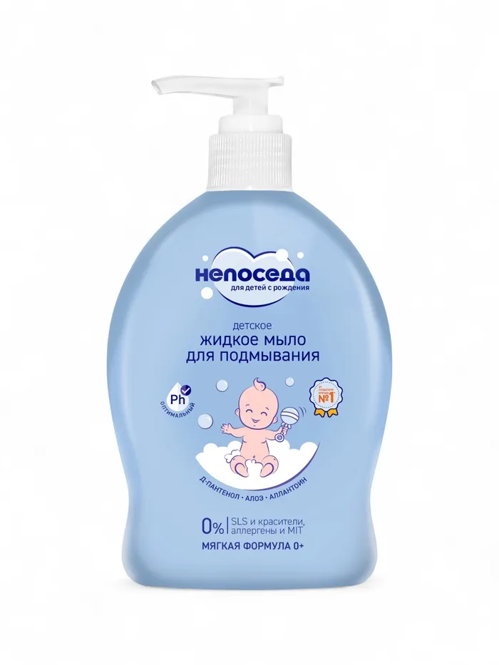 Жидкое мыло с алоэ и аллантоином Непоседа создано специально для ухода за нежной кожей новорожденных.