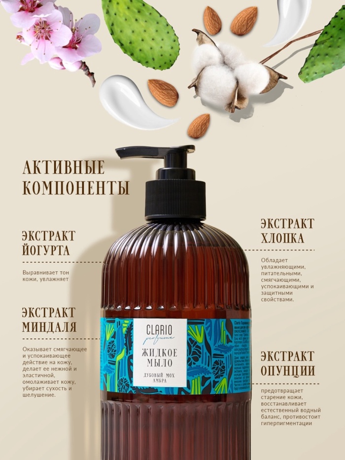 Даже жидкое мыло должно приносить удовольствие. Мягкая пена дарит приятную тактильность, эффективно очищает, не нарушая гидролипидную мантию кожи, а экстракты миндаля, хлопка, йогурта и опунции благотворно влияют на кожу и помогают ей противостоять времени и внешним факторам окружающей среды. Чистота и шлейф восхитительного аромата будут сопровождать долгое время.