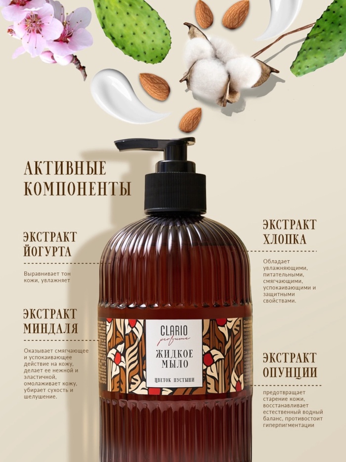 Даже жидкое мыло должно приносить удовольствие. Мягкая пена дарит приятную тактильность, эффективно очищает, не нарушая гидролипидную мантию кожи, а экстракты миндаля, хлопка, йогурта и опунции благотворно влияют на кожу и помогают ей противостоять времени и внешним факторам окружающей среды. Чистота и шлейф восхитительного аромата будут сопровождать долгое время.