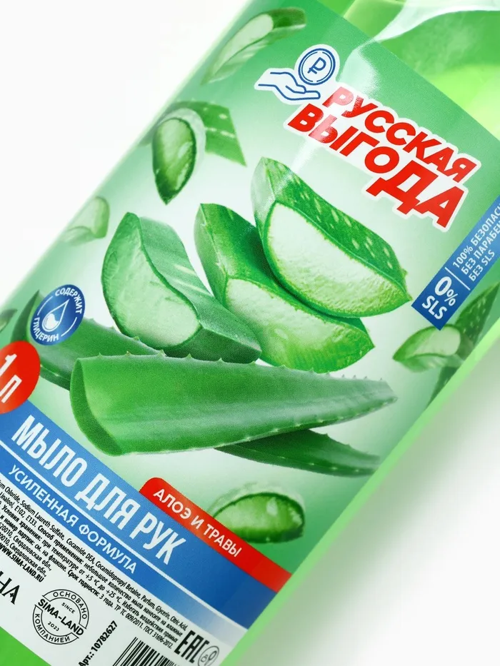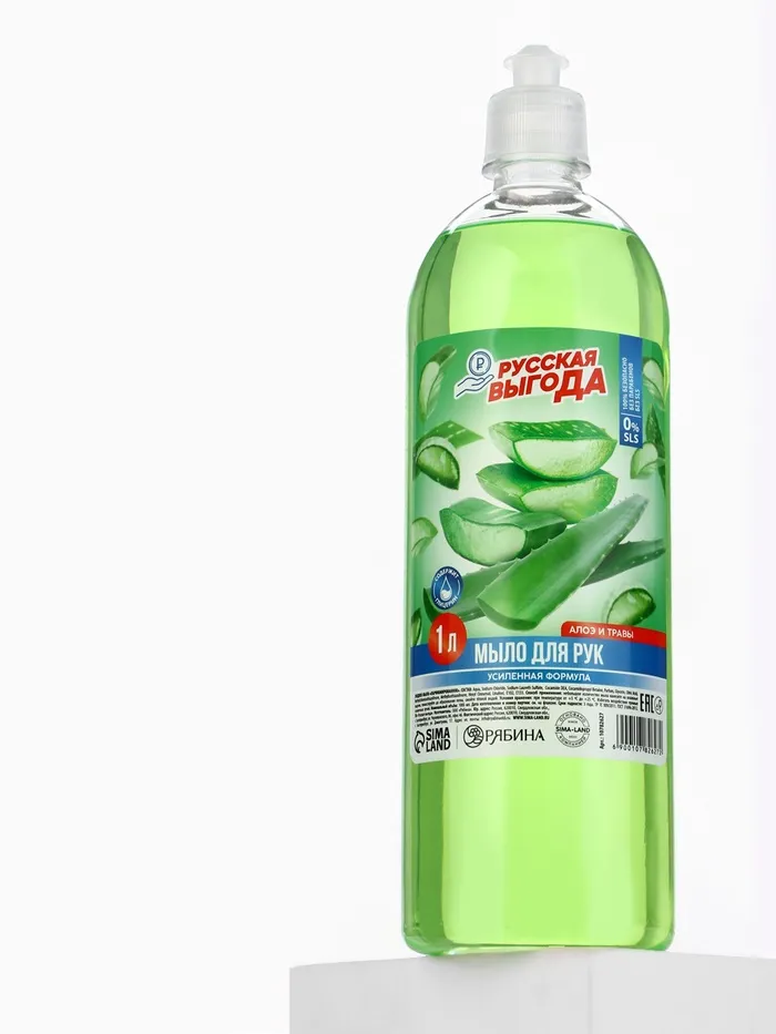 Жидкое мыло для рук РУССКАЯ ВЫГОДА, аромат алоэ и травы, 1000 мл — Характеристики