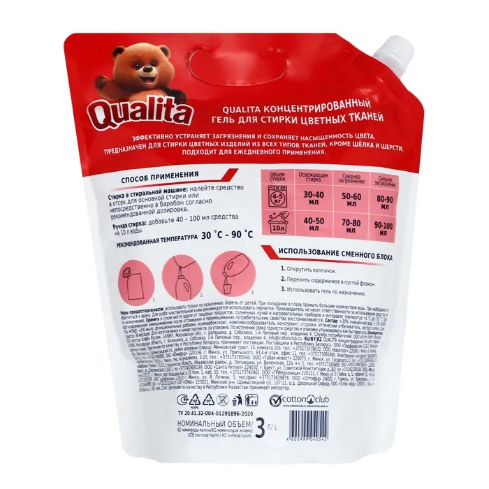 Состав: <5% АПАВ, <5% НПАВ, <5% мыло, растительный экстракт, отдушка, консервант. Содержит экстракт хлопка и ингибитор переноса красителя.