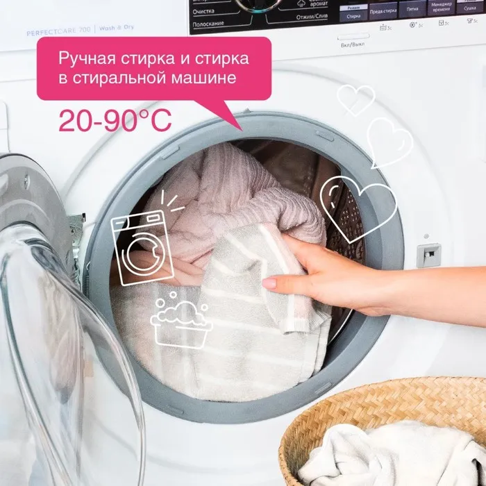 Не используйте для стирки шерсти, шелка, деликатных и мембранных тканей. Рекомендуемая температура стирки 30 - 40 °C.