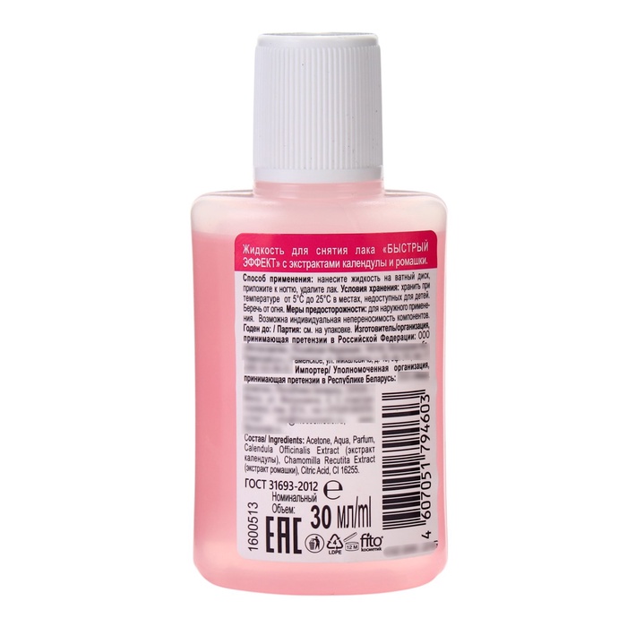 Жидкость для снятия лака "Быстрый эффект" с экстрактами календулы и ромашки 30 мл — Характеристики