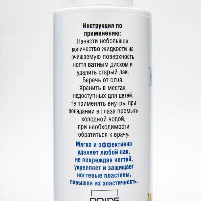 Способ применения: нанесите на ватный диск небольшое количество средства. Стирайте лак по направлению роста ногтей от основы к кончику.