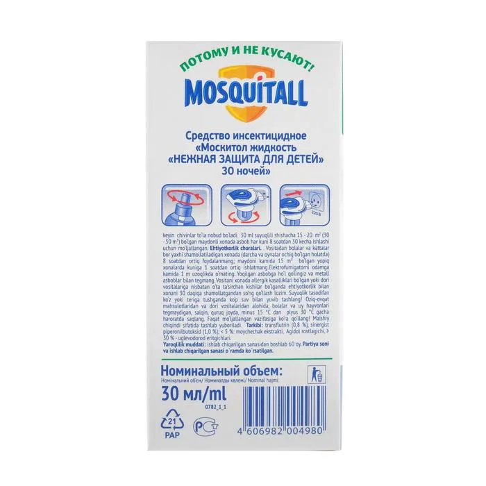 Жидкость от комаров Mosquitall «Нежная защита для детей», 30 ночей, 30 мл — Характеристики