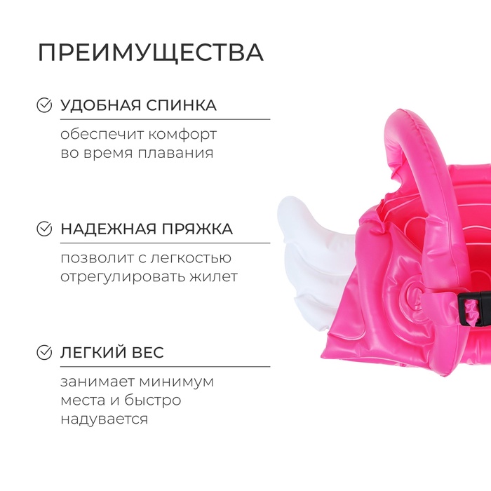 Жилет для плавания «Ангелочек», 30 х 49 см, цвет розовый — Характеристики