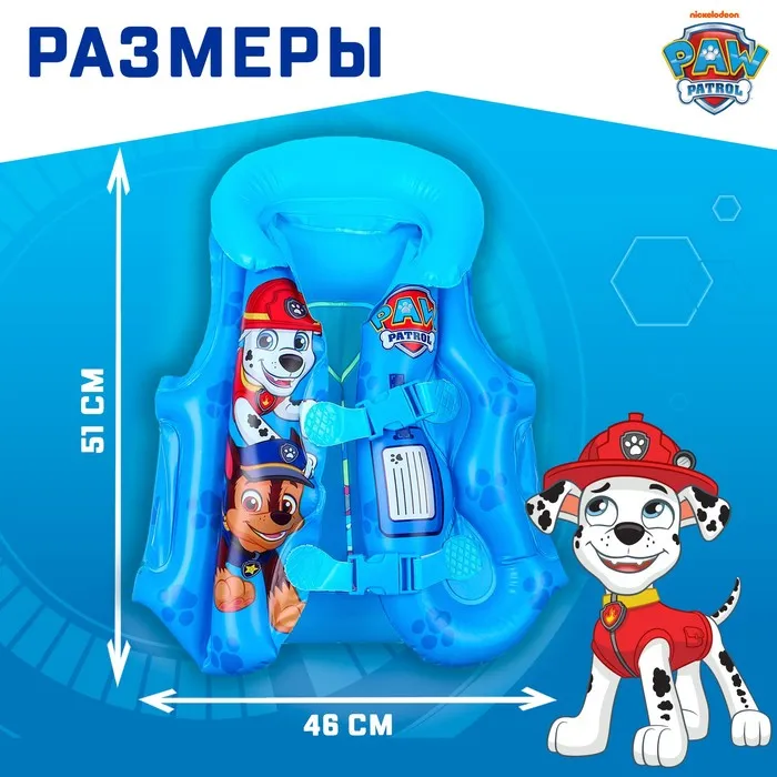 Жилет надувной для плавания, детский, Щенячий патруль, цвет голубой — Характеристики