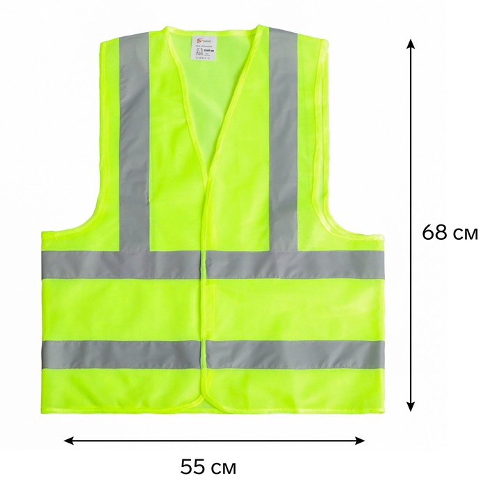 Жилет сигнальный, светоотражающий, салатовый, 3 класс, размер 68×55 см, 60г/м2 — Характеристики
