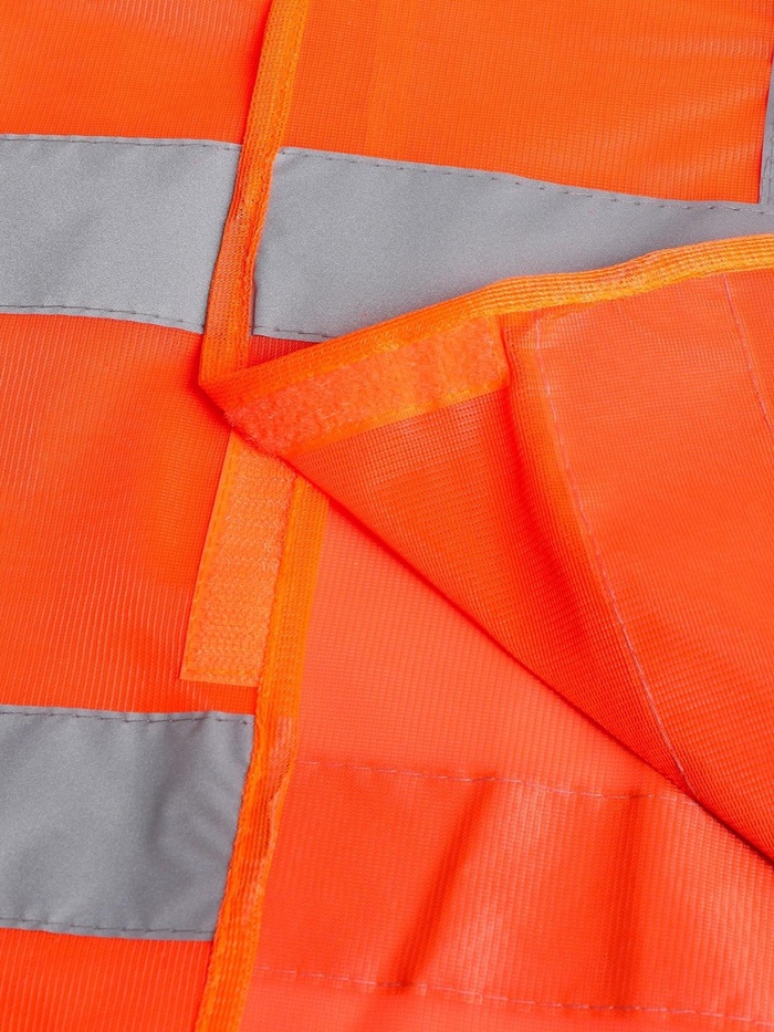 Сигнальный жилет с высокой степенью светоотражения предназначен для обеспечения безопасности на дорогах, строительных объектах и в других условиях с повышенным риском. Благодаря ярко-оранжевому цвету и широким световозвращающим полосам он делает пользователя заметным даже в условиях плохой видимости. Изготовленный из 100% полиэстера, жилет обладает лёгкостью и прочностью, обеспечивая комфорт при длительном ношении.