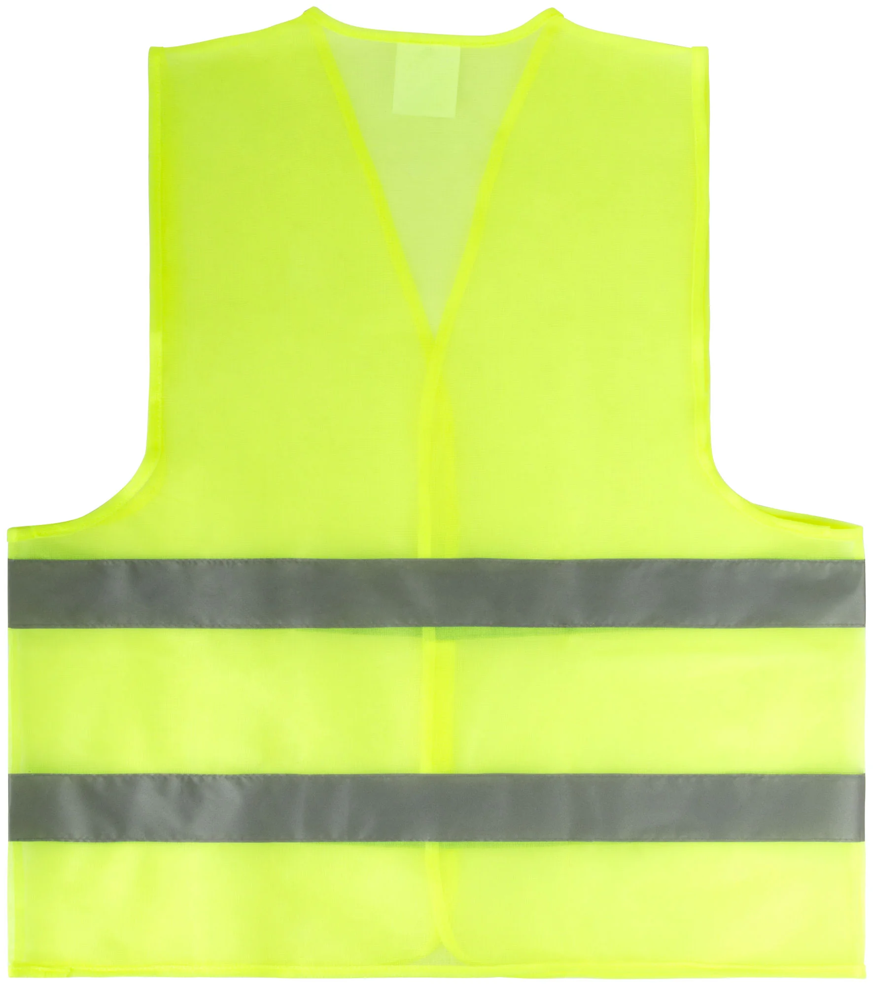 Жилет выполнен из 100% полиэстера, что обеспечивает его легкость и комфорт при ношении. Две горизонтальные световозвращающие полосы гарантируют максимальную видимость, отражая свет фар автомобилей и фонарей.