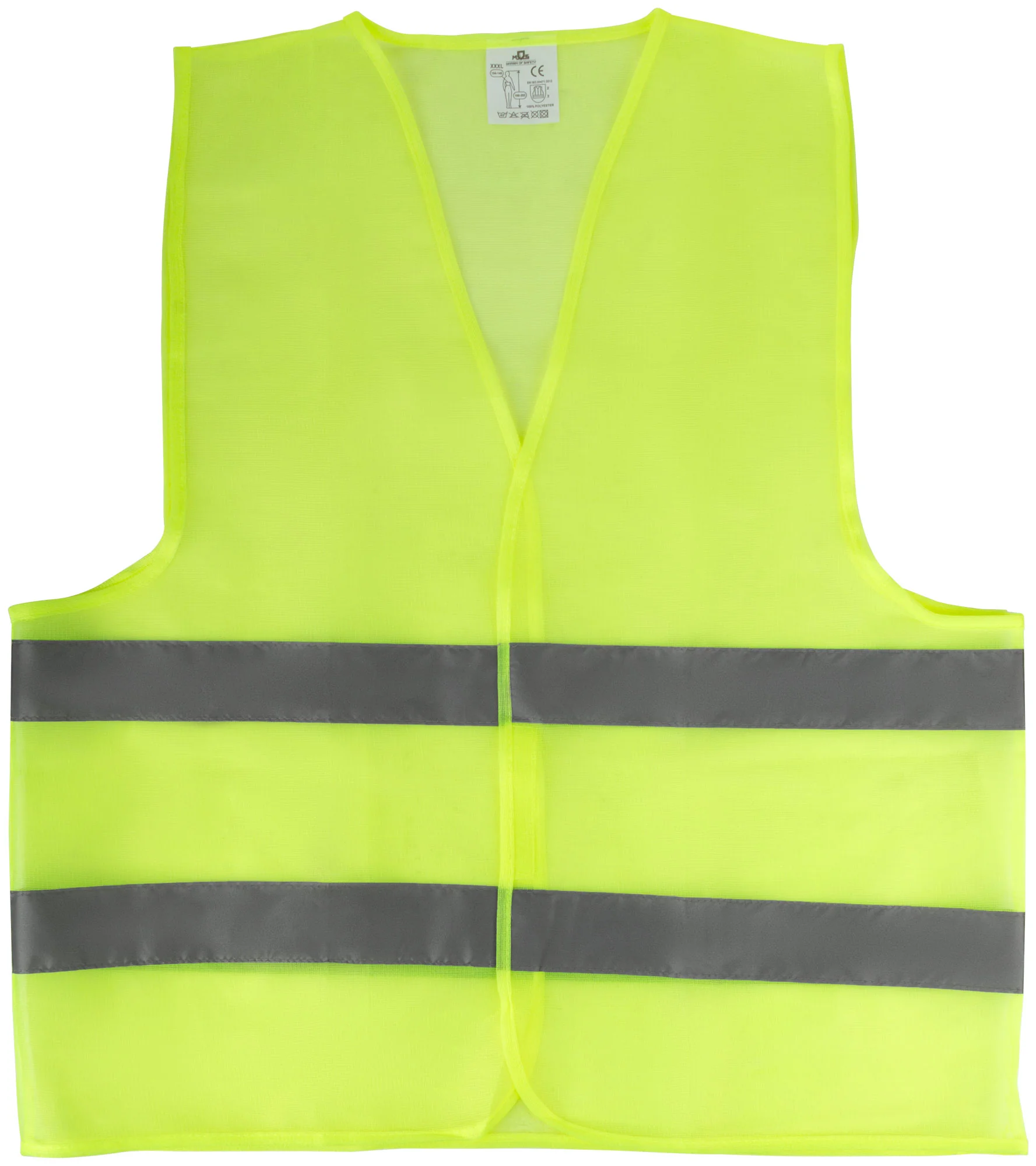 Жилет выполнен из 100% полиэстера, что обеспечивает его легкость и прочность. Две горизонтальные световозвращающие полосы значительно увеличивают видимость, что особенно важно при работе рядом с движущимися транспортными средствами.