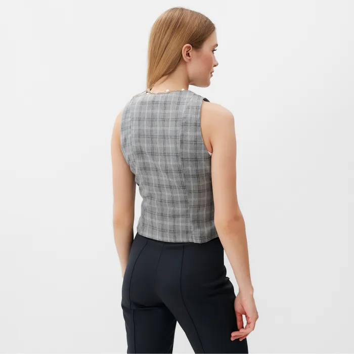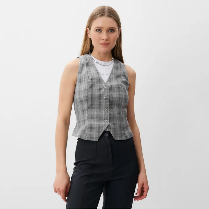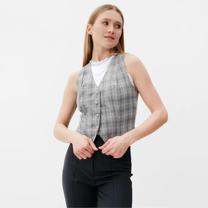 Жилет женский MINAKU: Casual Collection цвет клетка серая, р-р 48 — Характеристики