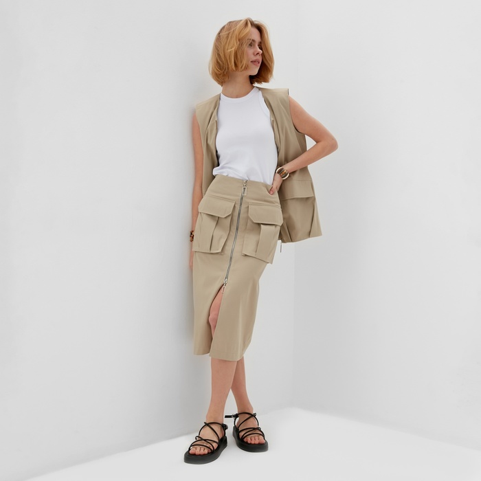 Жилет женский на молнии MINAKU: Safari, бежевый, размер 44 — Характеристики