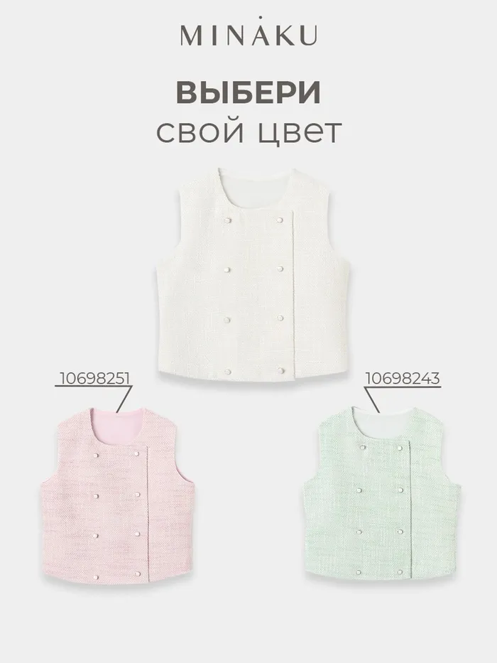 Жилетка для девочки, MINAKU :Party Dress, белая, рост 122 см — Характеристики