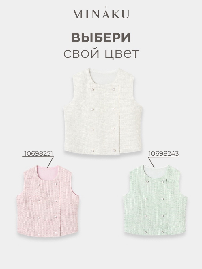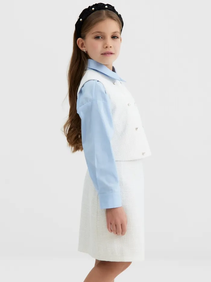 Жилетка для девочки, MINAKU :Party Dress, белая, рост 128 см — Характеристики
