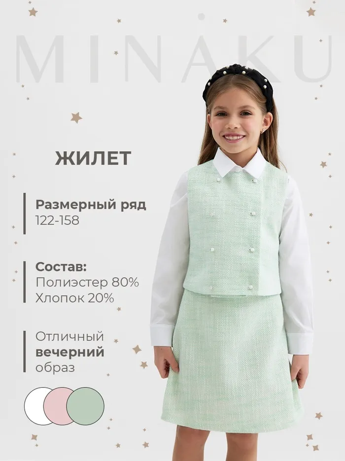 Жилетка для девочки, MINAKU :Party Dress, зелёная, рост 122 см — Характеристики