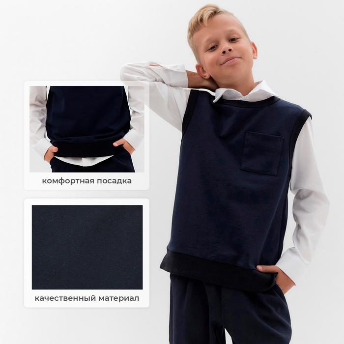 Жилетка для мальчика MINAKU: School Collection, тёмно-синяя, рост 134 см — Характеристики