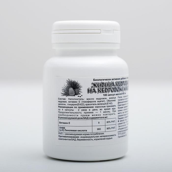 Состав: масло кедровое, живица кедровая, витамин Е.