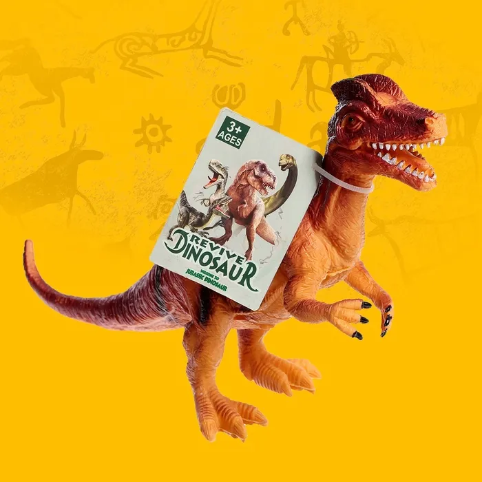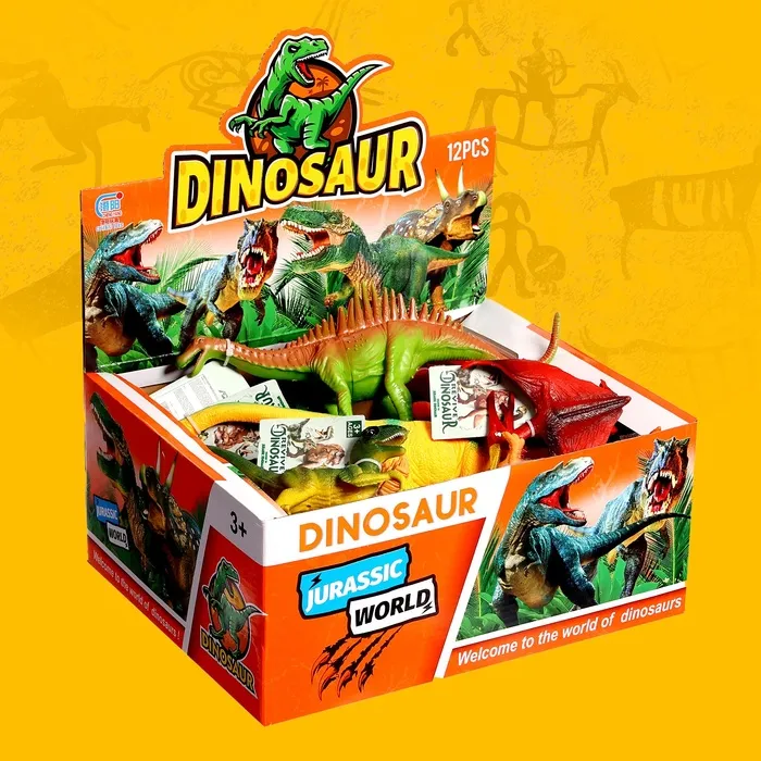 - В упаковке одна фигурка динозавра в ярких цветах.
