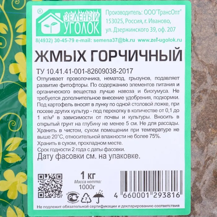 Жмых горчичный никогда не содержит семена сорняков и не может являться причиной их занесения на участок в отличие от перегноя и того же навоза.