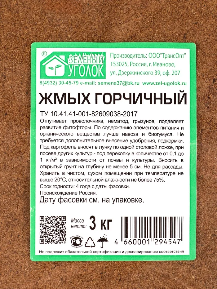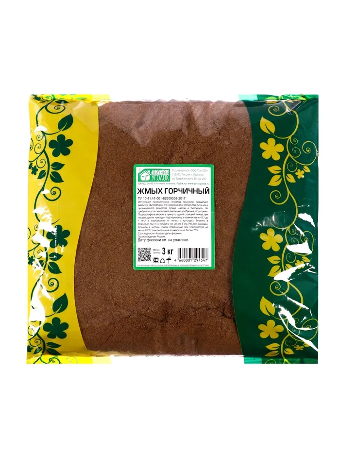 Жмых горчичный никогда не содержит семена сорняков и не может являться причиной их занесения на участок в отличие от перегноя и того же навоза.