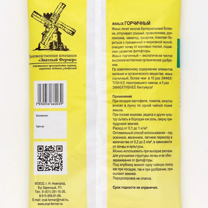 10 кг горчичного жмыха заменяет 1 м³ хорошего навоза.