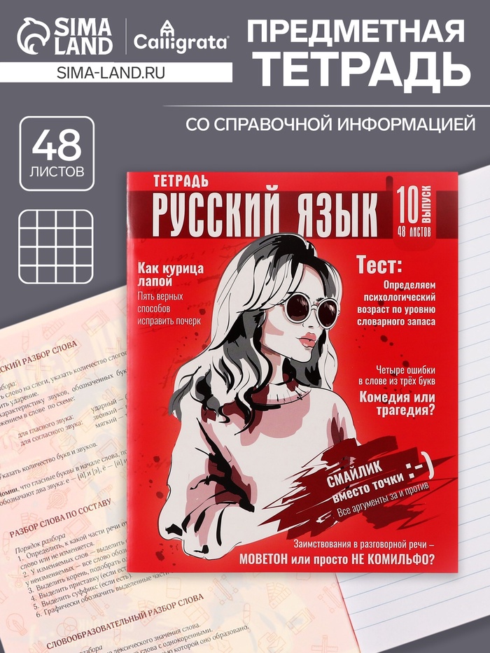 Тетрадь предметная 48 листов в клетку Calligrata «Журнал. Английский язык», картонная обложка, серые листы