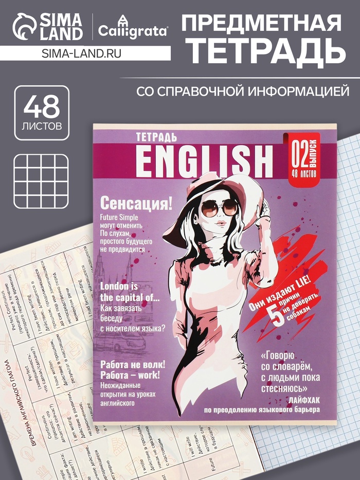 Тетрадь предметная 48 листов в линейку Calligrata «Журнал. Литература», картонная обложка