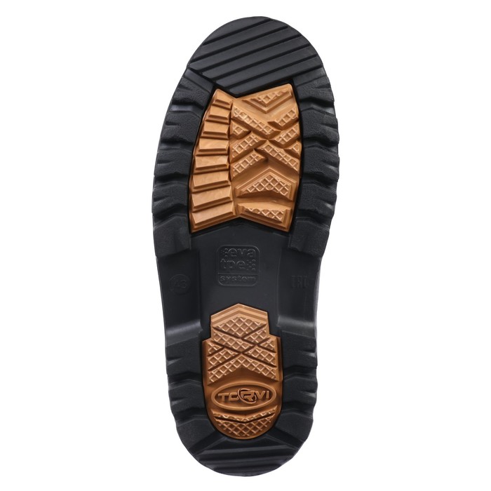 Верх сапога выполнен из цельнолитого ЭВА. Он выдерживает действительно низкие температуры и, в отличие от обычной резины, остается эластичным, не трескается.