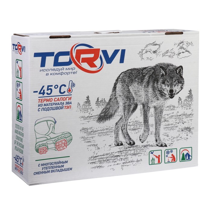 Сапоги "Torvi" - обувь, которая создана специально для ценителей зимних видов отдыха, охоты и рыбалки, и для тех, кто живёт или работает в зонах пониженных температур. Температура использования до -45 °C.