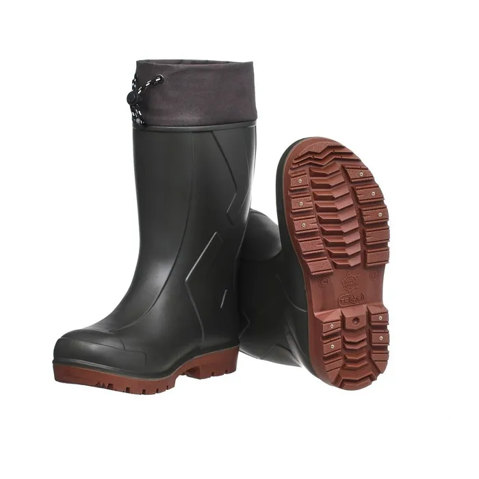 Сапоги Torvi -40 °C с голенищем из ЭВА и прилитой шипованной подошвой из полиуретана (ПУ) – предназначены для рыбалки, охоты и других активных видов деятельности в холодный период года, когда необходима надёжная защита от внешних воздействий. Комфортные современные сапоги оснащены нескользящей подошвой из полиуретана. Материал ПУ (полиуретан) прочнее, чем ЭВА. Он имеет немногим больший вес, но позволяет обуви быть более устойчивой к механическим повреждениям.